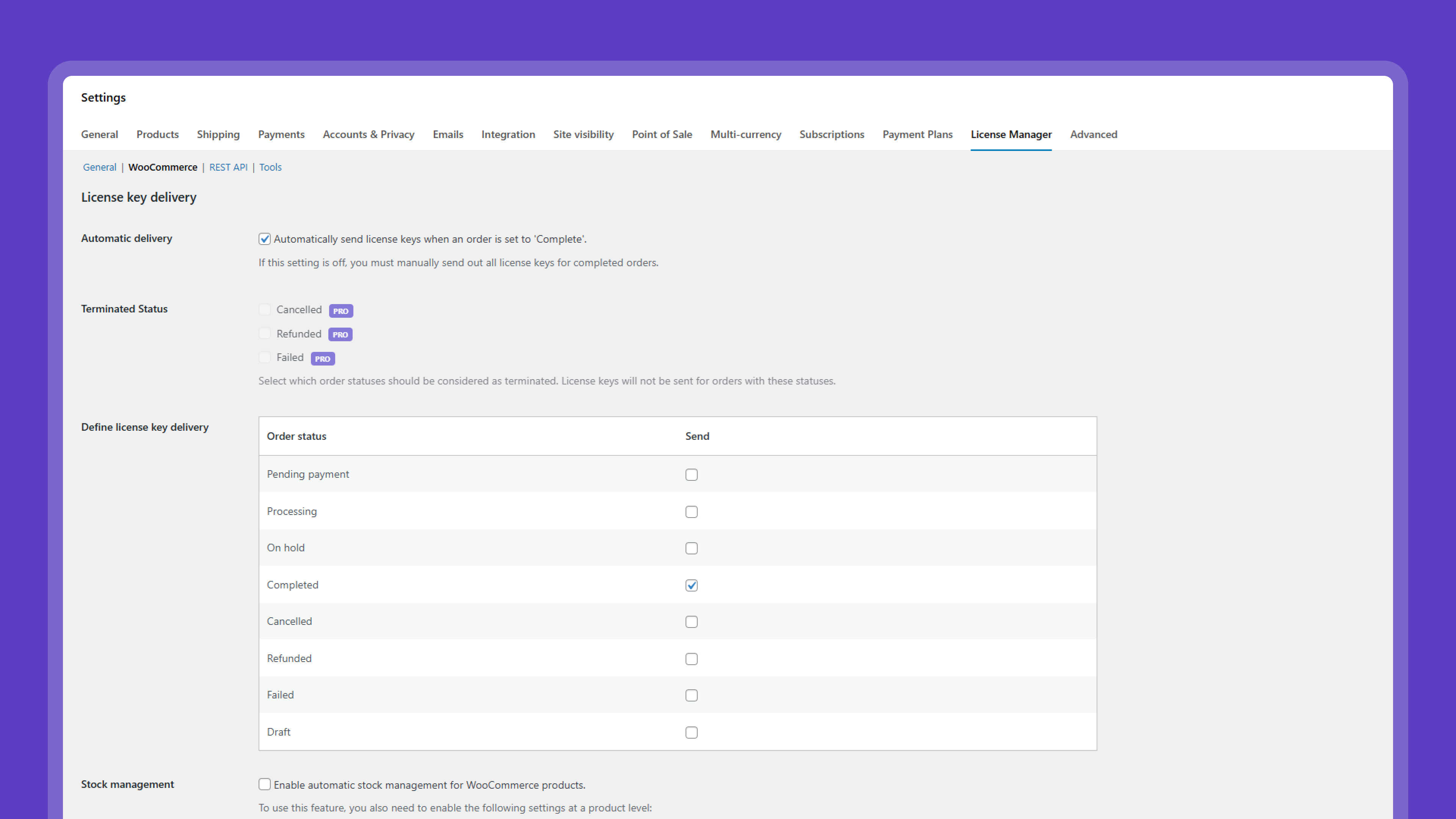 - Automatically sell and deliver license keys through WooCommerce.