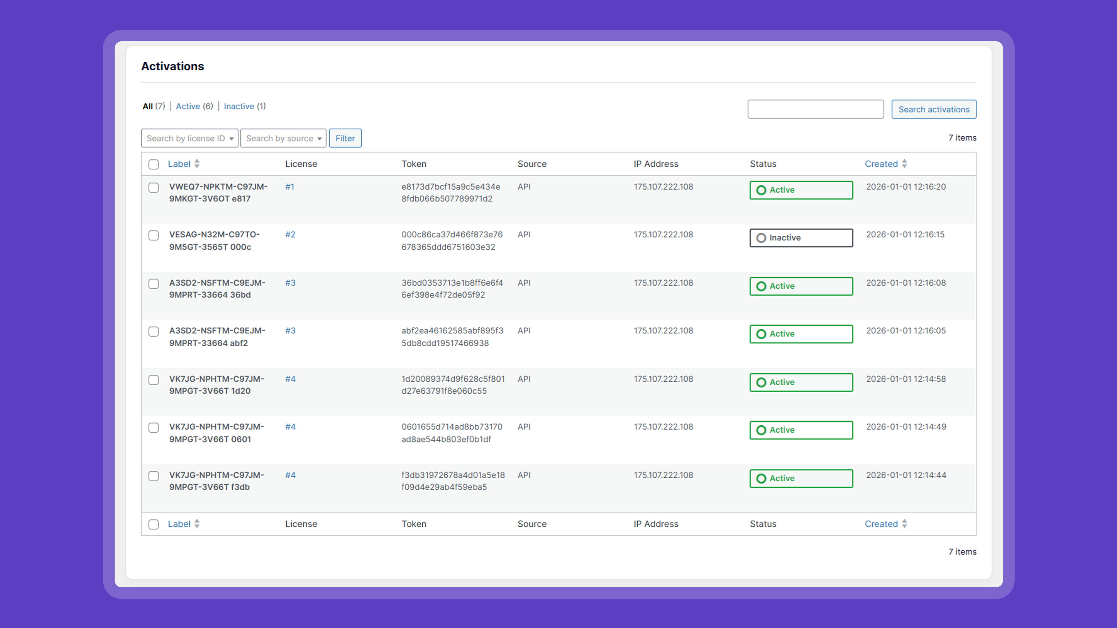 - Validate, activate, or deactivate licenses via the REST API.