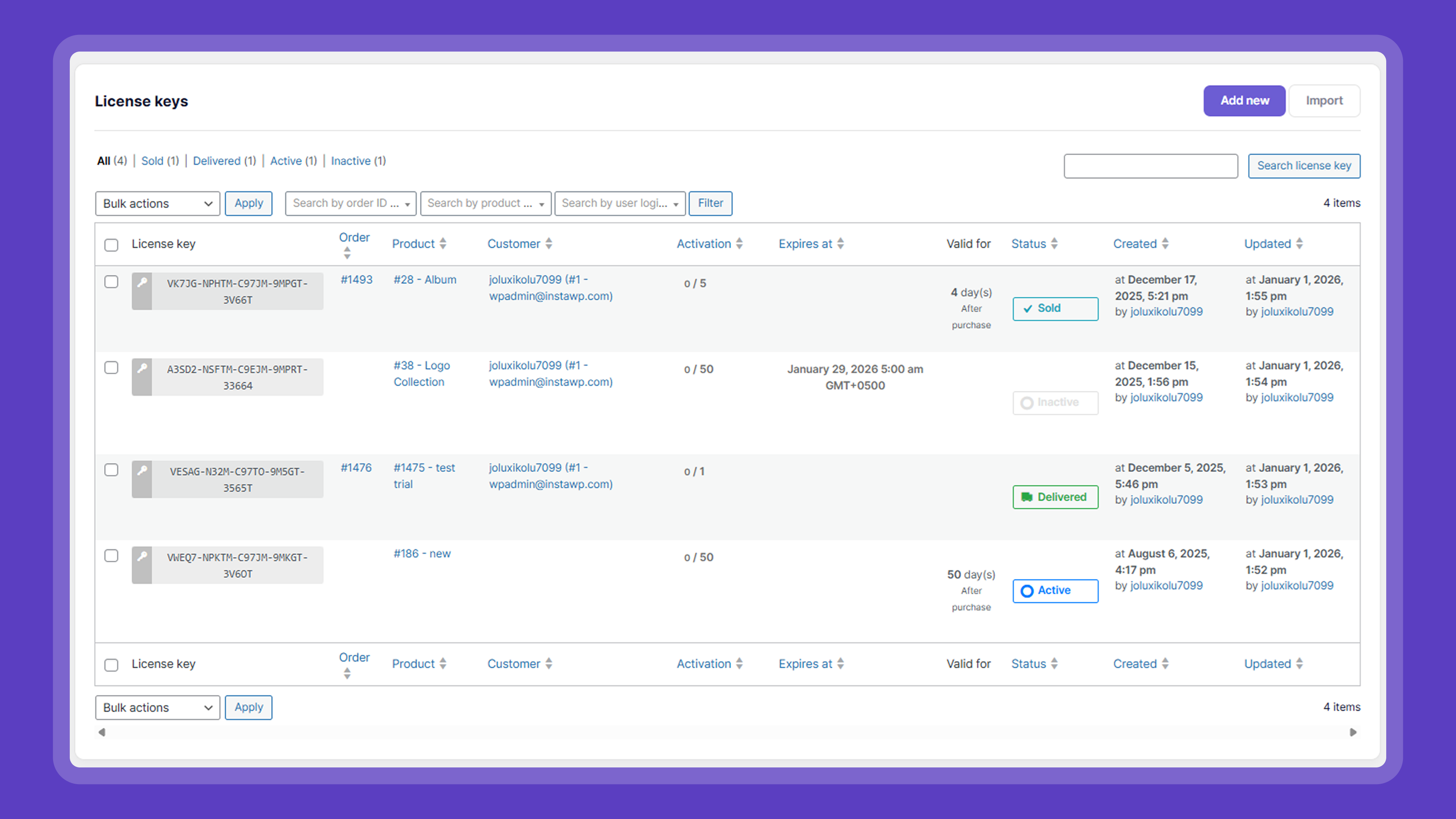 - Fix – Users can now edit and delete all license keys, even sold/delivered ones.