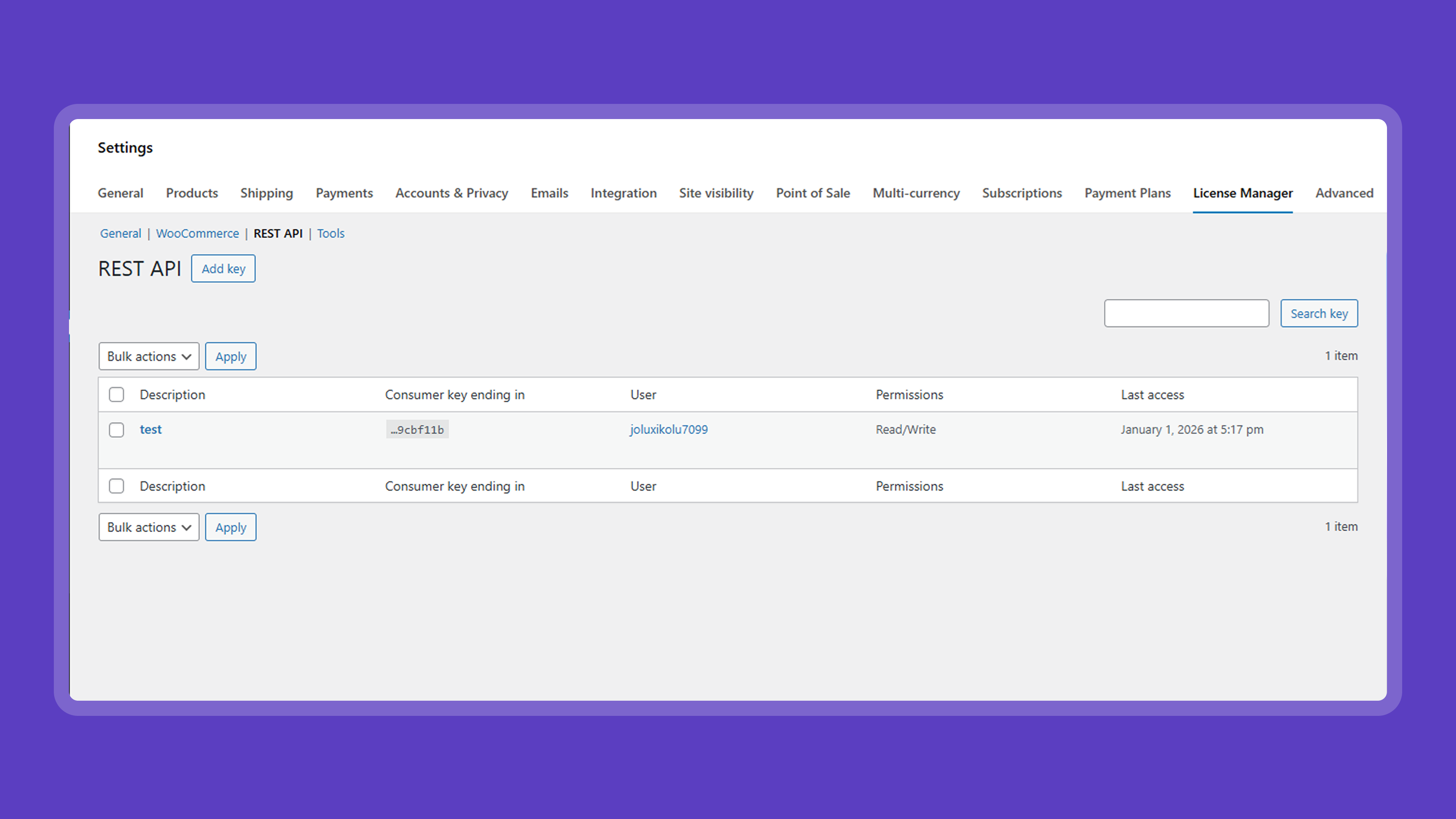 - Connect your apps, plugins, or external services to WooCommerce for license verification.